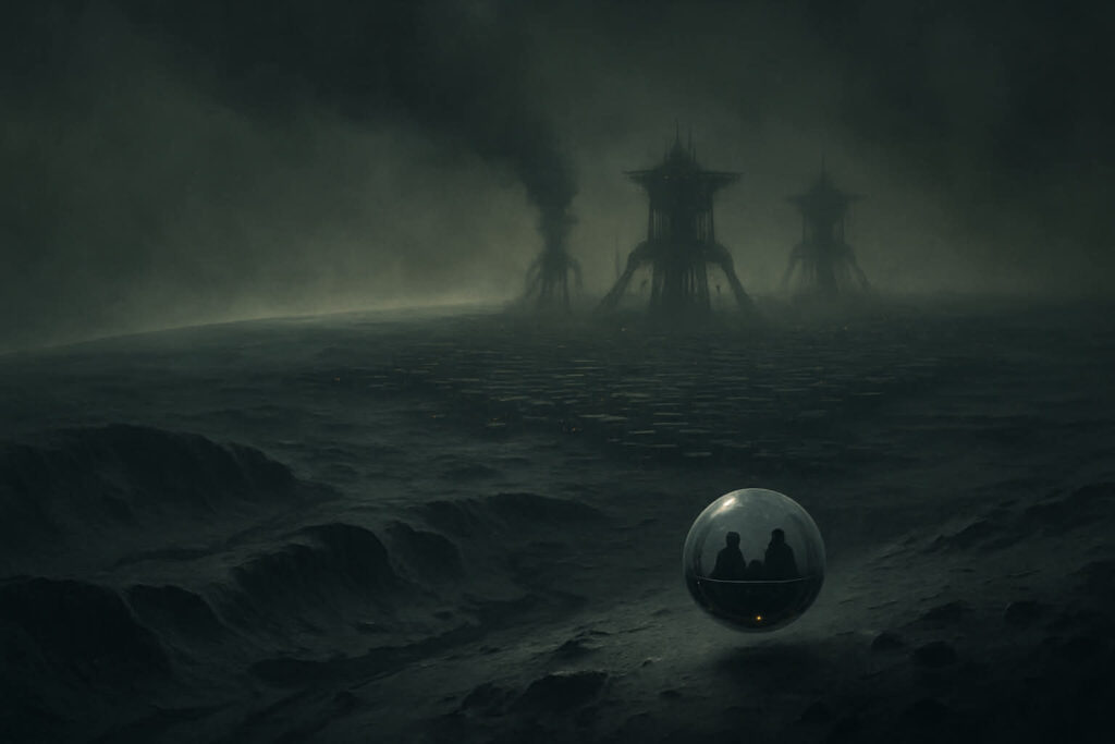 Különös panorámakép tárult elé. A gyorsan távolodó bányabolygó távlata. A konténerházak zegzugos utcaképe. A völgyben dolgozó lánctalpas óriásgépek, a távoli önjáró terraformáló mechanizmusok. Építkező robotok, amelyek egy félkész toronyszerű épület szerkezete körül sürgölődtek-forgolódtak. Egy idő után pedig a Jasper különös tájai. Torz szikla alakzatjai. Mély kanyonrendszere. És persze a tátongó, sötét barlangbejáratok, amely egy része természetes képződmény volt, míg a másik része mesterséges.